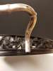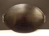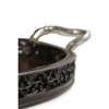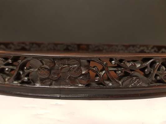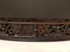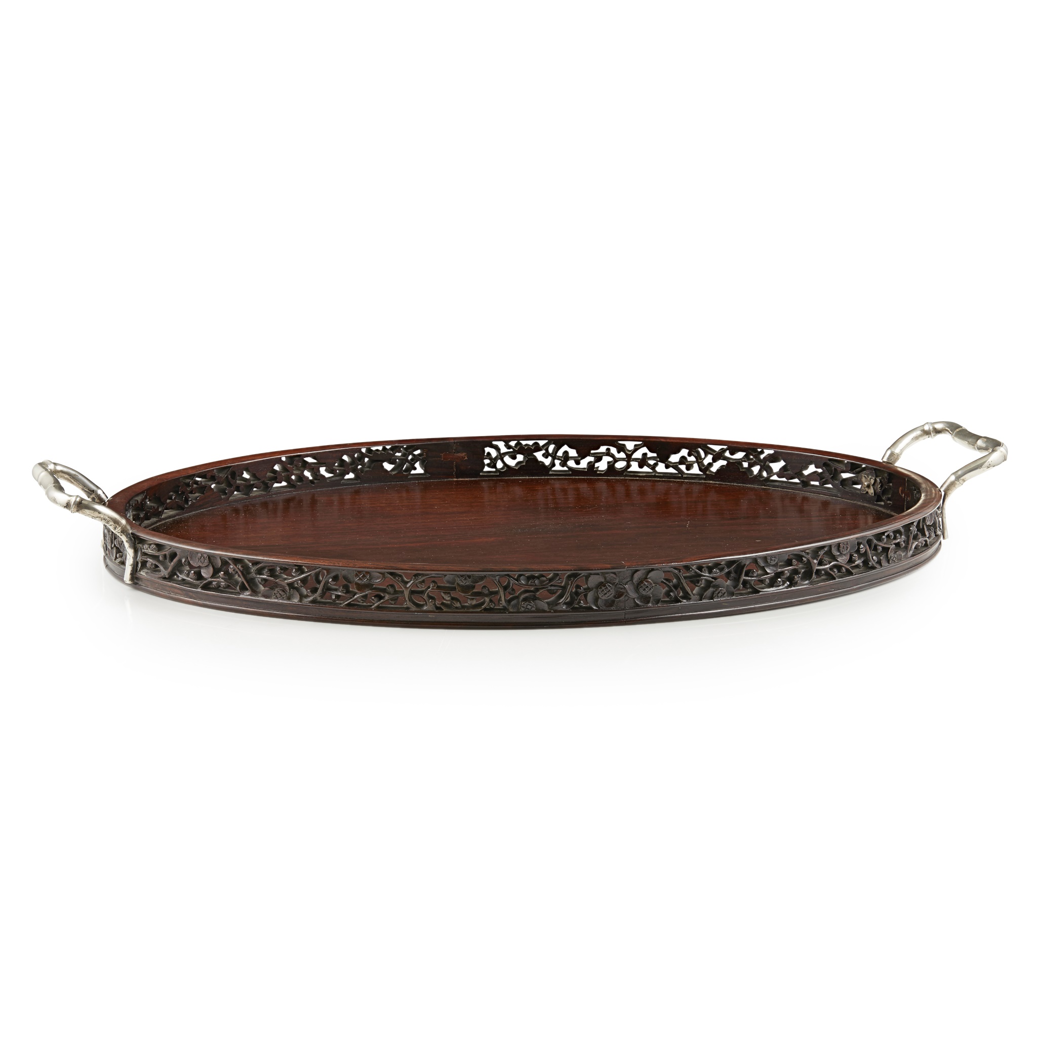 oval with a gallery pierced and carved with prunus blossoms, mounted with silver bamboo handles hallmarked 'LW'