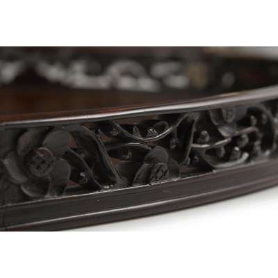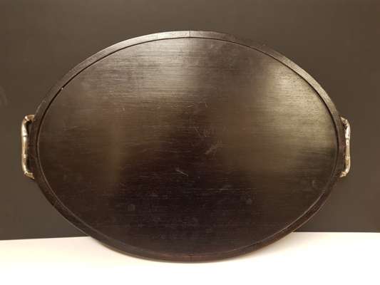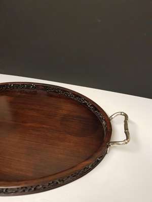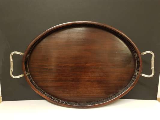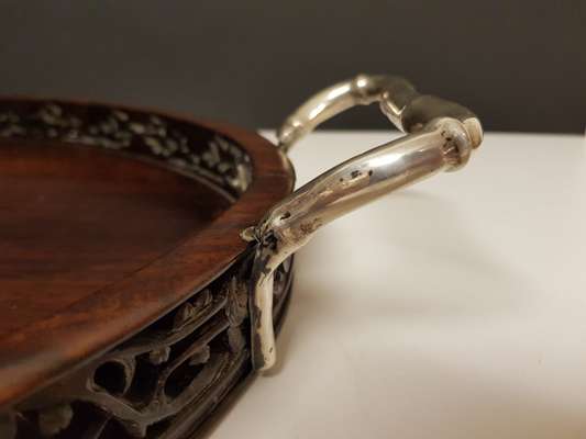 CHINESE EXPORT HARDWOOD SILVER MOUNTED TRAY