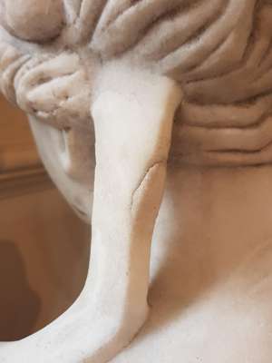 the chest length bust facing sinister, her hair in a chignon, on a separate socle base