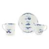 all with moulded bodies, decorated in underglaze blue, variously marked, comprising two coffee cups, 6cm and 5cm high; and a saucer, 12cm diam.