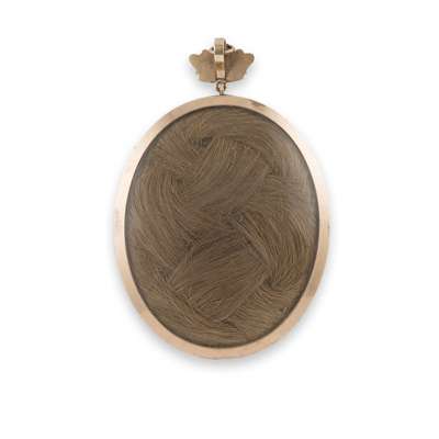 oval, watercolour on ivory, shown in three-quarter profile, wearing a red jacket, blue sash and the Order of the Garter, in a gilt metal frame with an enamelled coronet bale and inscribed WILLIAM FREDERICK DUKE OF GLOUCESTER, with woven hair verso