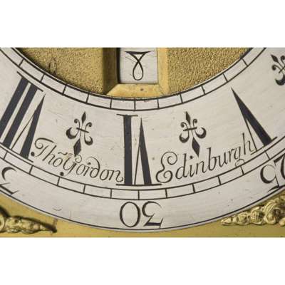 Note: Thomas Gordon, Edinburgh 1688-1743 was apprenticed to Andrew Brown and freed in 1703. He worked for forty years making watches as well as longcase and bracket clocks. Existing clocks by him are very rare, as indeed, all early Edinburgh clocks are. Further information can be found in Old Scottish Clockmakers by John Smith.