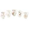 comprising three painted in red, puce and green, depicting various flower sprigs and sprays, largest 8.5cm high; a jug depicting Chinese figures, 7.5cm high; and a jug decorated in the 'Harvest Bug' pattern, 8cm high