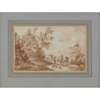 A WOODED LANDSCAPE WITH SHEPHERDS ON A COUNTRY PATH
