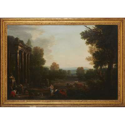 CLASSICAL ITALIAN LANDSCAPE WITH GOATHERDS AMONG RUINS