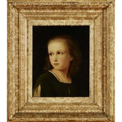 PORTRAIT OF A YOUNG GIRL, HEAD AND SHOULDERS, IN A GREEN DRESS