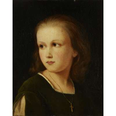 PORTRAIT OF A YOUNG GIRL, HEAD AND SHOULDERS, IN A GREEN DRESS