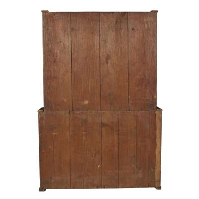the rectangular top over two astragal glazed doors opening to shelves, the lower section with two panelled doors, raised on a short plinth base