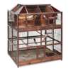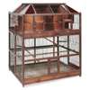 comprising four upper compartments over a large open compartment, all with wire sides, the pitched roof with coloured glass corner mounts