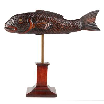 CARVED AND MOUNTED HARDWOOD FISH MODEL