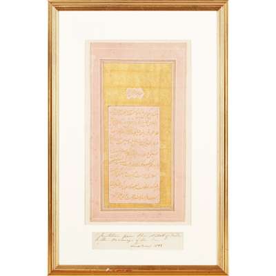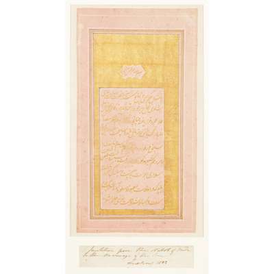 gilt on paper, calligraphic inscription, from the Vizier of Lucknow to attend the marriage of his son