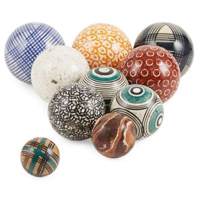 various sizes, to include sponge-printed and painted examples, a small marbled example, and a white jack