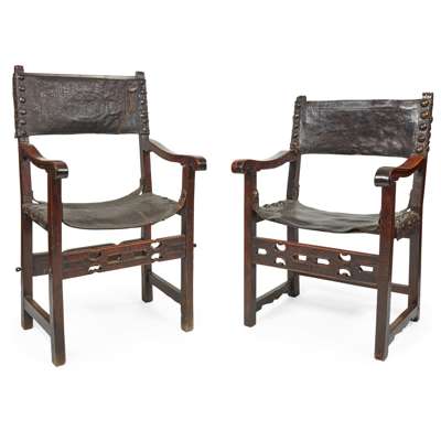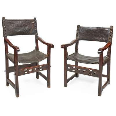 SET OF EIGHT SPANISH WALNUT AND LEATHER CHAIRS