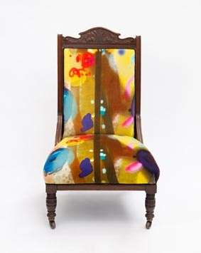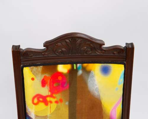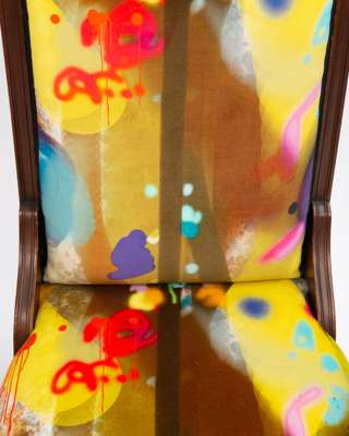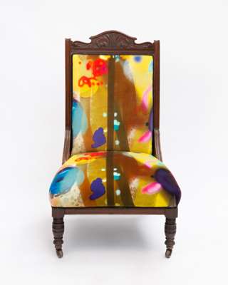 Antique Wooden Chair upholstered in Graffiti Stripe Velvet