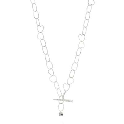 Hand-crafted from the workshops above Hamilton & Inches' showroom, a hammered oval and double heart chain link necklace and matching bracelet in sterling silver.