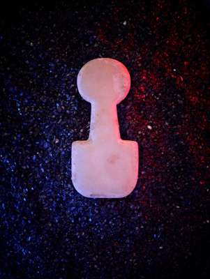 carved marble, the disk-shaped head on a long tapering neck, with a sqaure shaped body