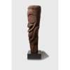 carved fernwood, of totemic form with a stylized oversized head carved with prominent eyes and a gaping mouth, the arms held in at the midriff towards the genitals, the knees bent below, raised on a bespoke mount with a label reading "Totem du Pacifique. Big Numbers 65. Solomon Islands [sic]" and a second Gunter Sachs collection label