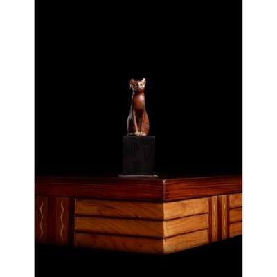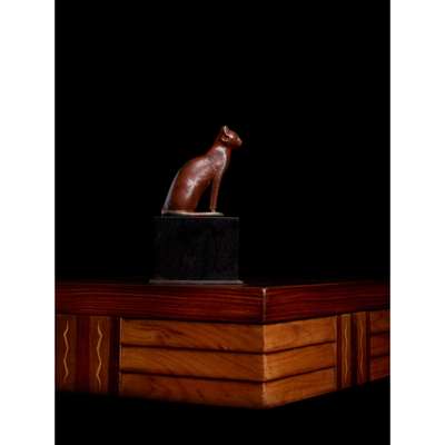 Ancient Egyptians revered the cat as magical creatures, capable of bringing good luck to the people who housed them. Their popularity was also practical due to their ability to keep the house safe from vermin and snakes – cobras in particular. Bronze cats such as the present example were often cast reverence to the goddess Bastet, whose main cult centre was at Bubastis in the eastern Delta.