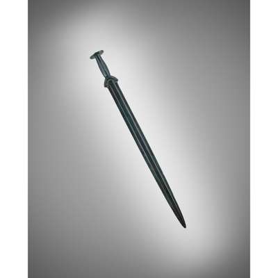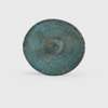 long blade gently broadening below the tip and with medial ridge the hilt with arched guard riveted to the blade and decorated with a series of concentric circles, a concave disc pommel enclosing knob terminal, adorned with elaborate chased linear decoration of waves and dots, rich green patina