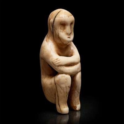 carved Physeter macrocephalus (Sperm whale) tooth , the hunched figure shown seated, with the knees held up towards the chest
