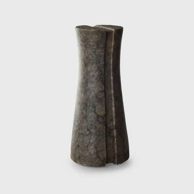 carved and polished black breccia, of tapered cylindrical form, with a prominent wide running from the top along the full body