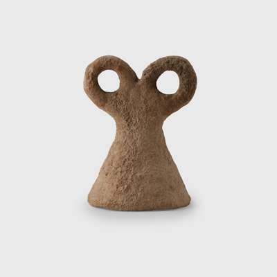 terracotta, with a hollow trapezoidal body, flaring out into two arms formed into circular "eyes"