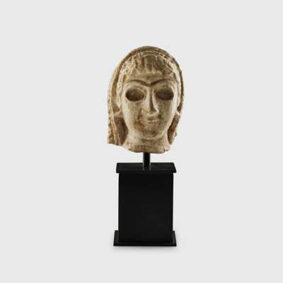 SUMERIAN HEAD OF A FEMALE WORSHIPPER
