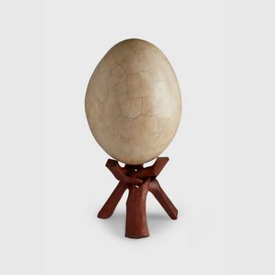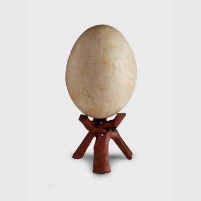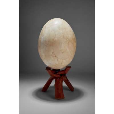 egg 44cm high, 76cm circumference at widest / stand 19cm high