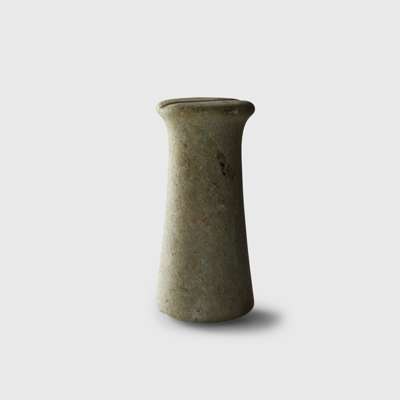 carved green marble, standing on a rounded base, cylindrical form, gently tapering at the neck, with a shallow groove at the top