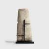 carved limestone, block-like, cubist form and recessed grooves indicating the stylised form, scattered surface deposits