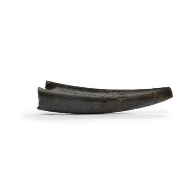 a fine specimen displaying a deep black patination, a 1 -2 million-year-old member of the Elephantidae subfamily, Stegodon is considered the ancestor of elephants, mastodons and mammoths