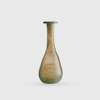 blown glass, the piriform body leading to a slender cylindrical neck terminating in a fold out rim