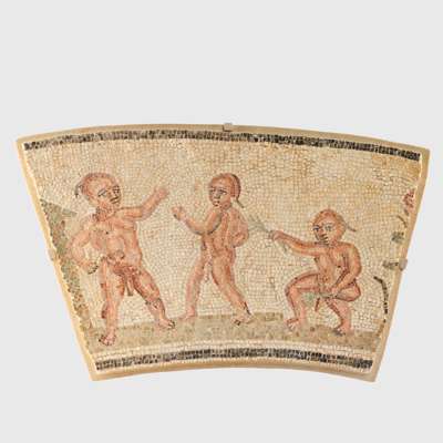 For another fragment from the same Nilotic mosaic border, also featuring Pygmies, see Sotheby's, London, December 4th, 2018, lot 59.