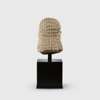 This head was likely part of a life-size statue depicting a nude young man, referred to as a kouros, derived from the Greek word for boy. Its stylistic features suggest it was produced by a provincial workshop. The head displays the emblematic "Archaic Smile," a defining feature of Greek sculpture from the late seventh and early sixth centuries BC. This subtle, enigmatic expression was employed to animate figures and convey an idealised sense of vitality and well-being, symbolising internal harmony rather than reflecting individual emotion. The widespread use of this motif can be seen across a wide array of scenes, even in depictions of mortally wounded warriors, highlighting its symbolic role. While its exact meaning is still debated, the smile likely reflects the Greek ideal of arete (excellence) and may also suggest a philosophical expression of life and the afterlife.
