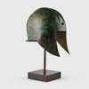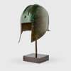Passed from father to son, helmets were amongst the most prized items of the ancient hoplite. This striking example belongs to the class known as Illyrian. It is distinguished by the open face without a nose guard and parallel ridges running along the top intended for the attachment of a crest.