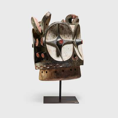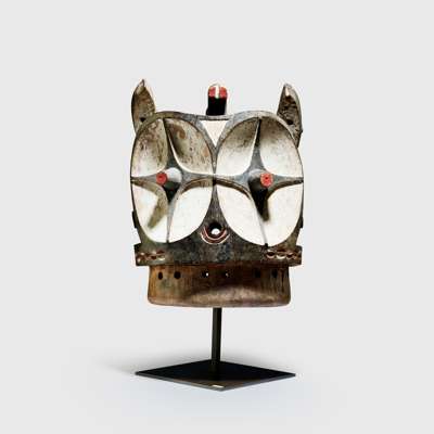 In southern D.R.C. and Angola, brightly painted masks mark the transition to adulthood. Adolescent boys undergo a long initiation period filled with challenges to test their strength and courage. The Bembe alunga society mask, decorated with feathers and quills, is worn to celebrate their return to the village.