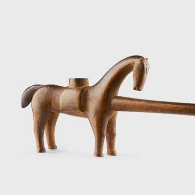 carved wood, the long stem terminating in a bowl in the form of a horse