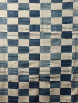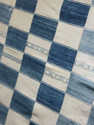 hand-spun cotton, with a white and blue checked pattern, 209cm x 138cm