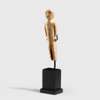 carved marine ivory, shown standing, the arms tucked behind the back, the facial features reduced to the essence of form, raised on a bespoke mount