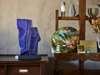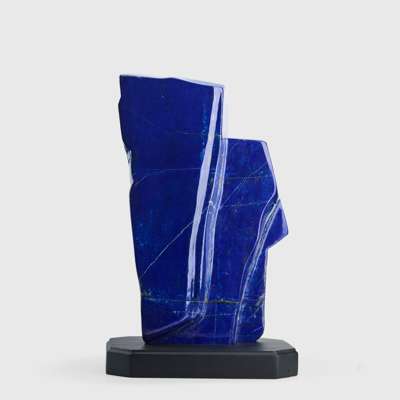 deep blue, cut and polished, with thin veining and pyrite deposits, raised on a bespoke mount