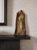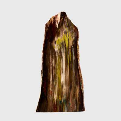Under the right conditions and over extensive periods, buried wood tissue can fossilize as minerals carried by water gradually infiltrate it. In this case, the wood fossilized near a copper deposit, leading to vibrant copper mineral inclusions that appear as striking streaks of blue, yellow, green, and red.