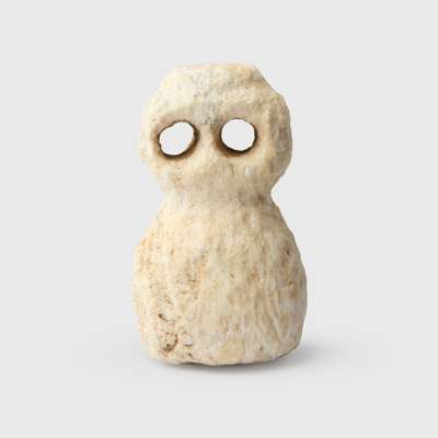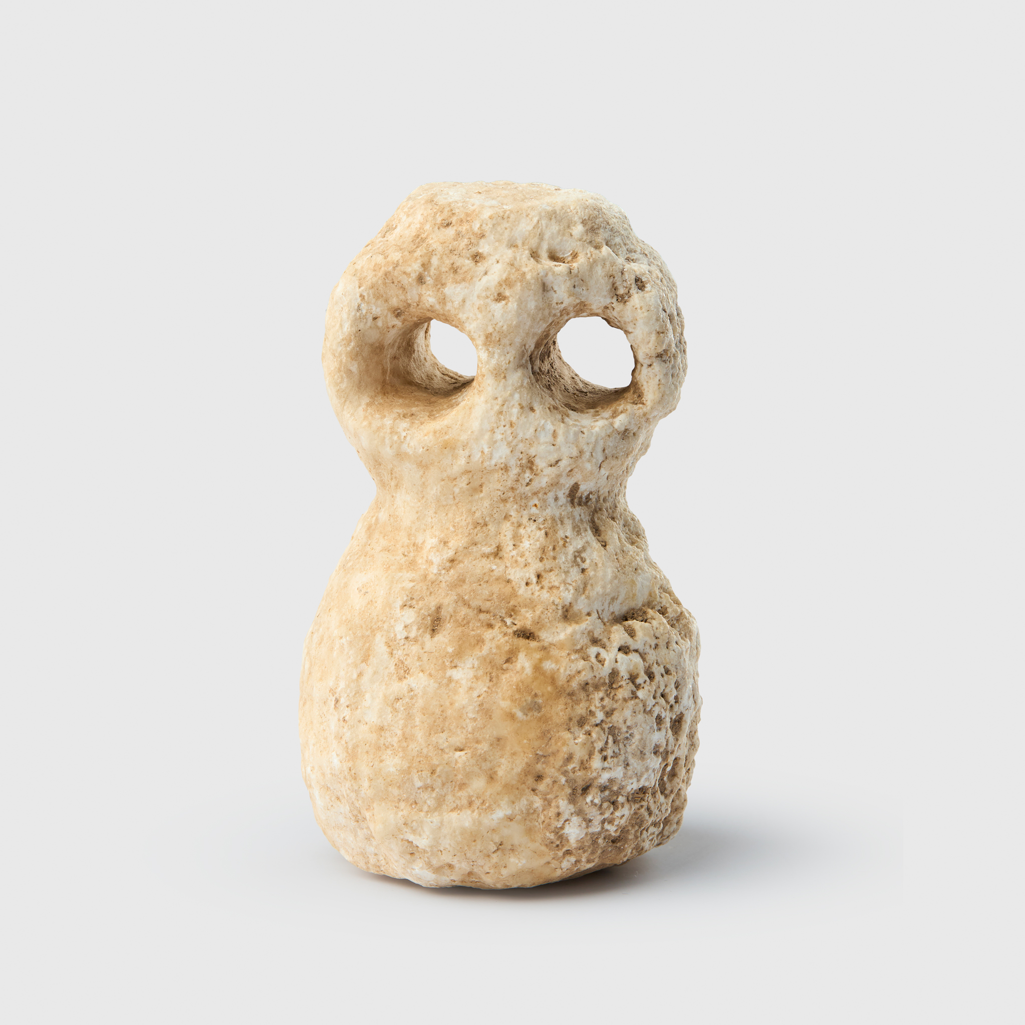 stone, with a trapezoidal body, flaring out into two arms formed into circular "eyes"
