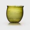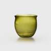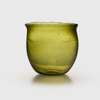 green glass, standing on a concave base, the rounded body with subtly out-turned lip