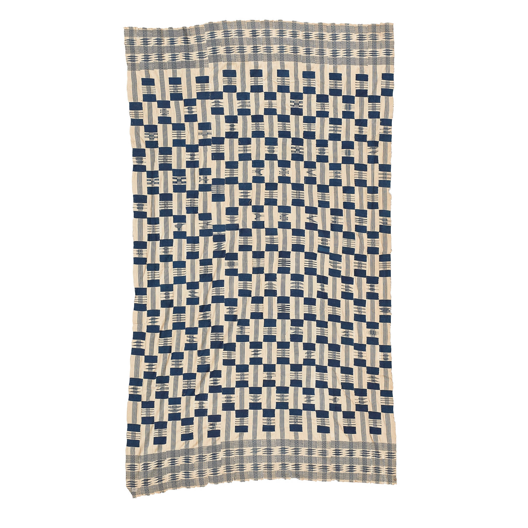 hand and machine spun cotton, with elaborate weft-float motifs including scissors, knives, hats, chickens and geometric forms