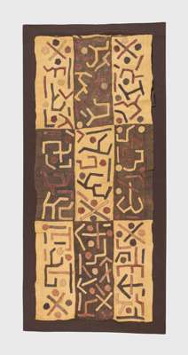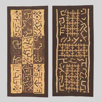 raffia stem-stitch and cut- pile embroidery, each presented on a fabric mount (2)