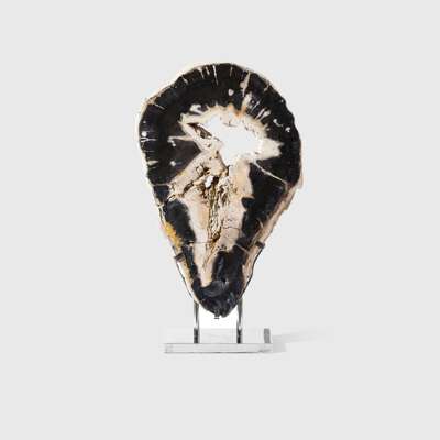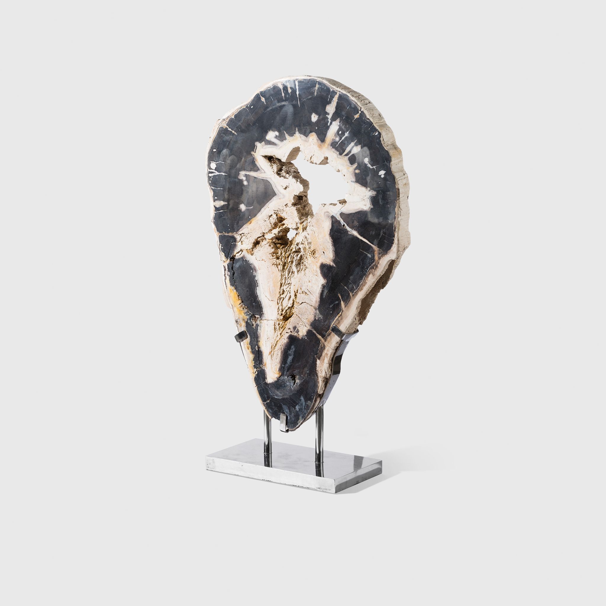 a large example with a buttress like projection at the base, raised on a bespoke stainless steel mount