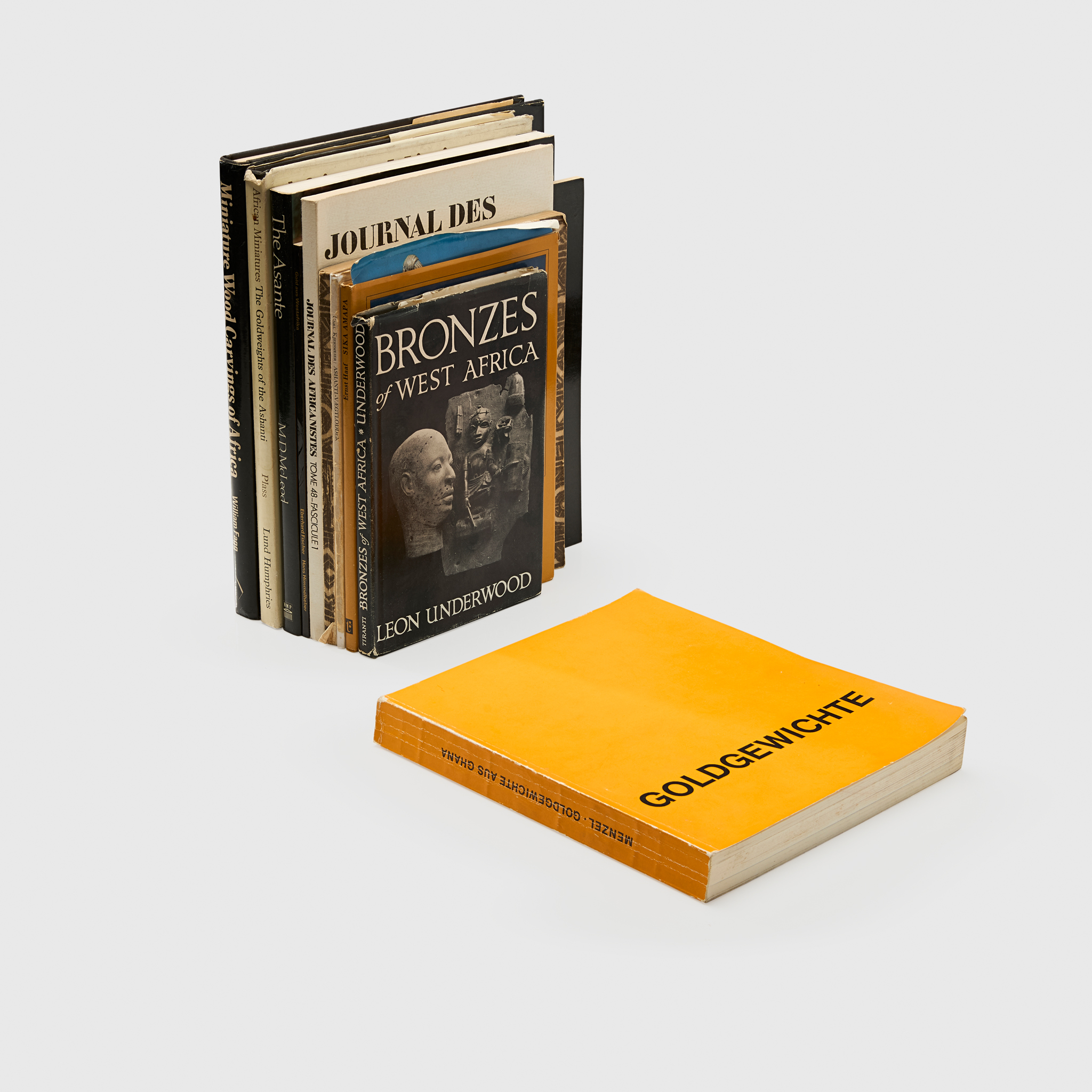 An informative and specialised lot of reference works on West African miniature carvings, with a specific focus on goldweights, and regional traditions of metalwork, comprising: