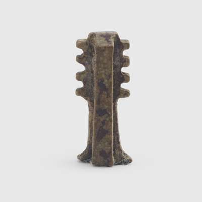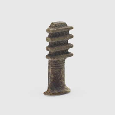 The djed pillar is a stylised form of an ancient emblem that likely originated from a bundle of plant material. From the earliest periods of Egyptian civilisation, it symbolised stability and endurance. In later times, it became linked with the god Osiris and was regarded as a representation of his spine. In this context, the djed pillar was most likely employed as a funerary amulet, intended to grant lasting stability and to forge a close association between the deceased and Osiris, who was resurrected after death.