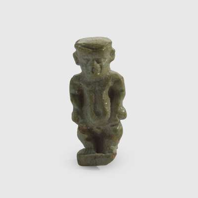 faience, standing on a square base with hand clenched and arms resting by his side, was a suspension loop to the back of the neck for suspension