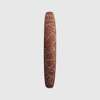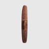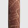 carved wood and pigment, incised with linear and cross-hatched designs, overlaid with white pigment, an integral handle to the reverse, accompanied by a stand intended for wall mounting